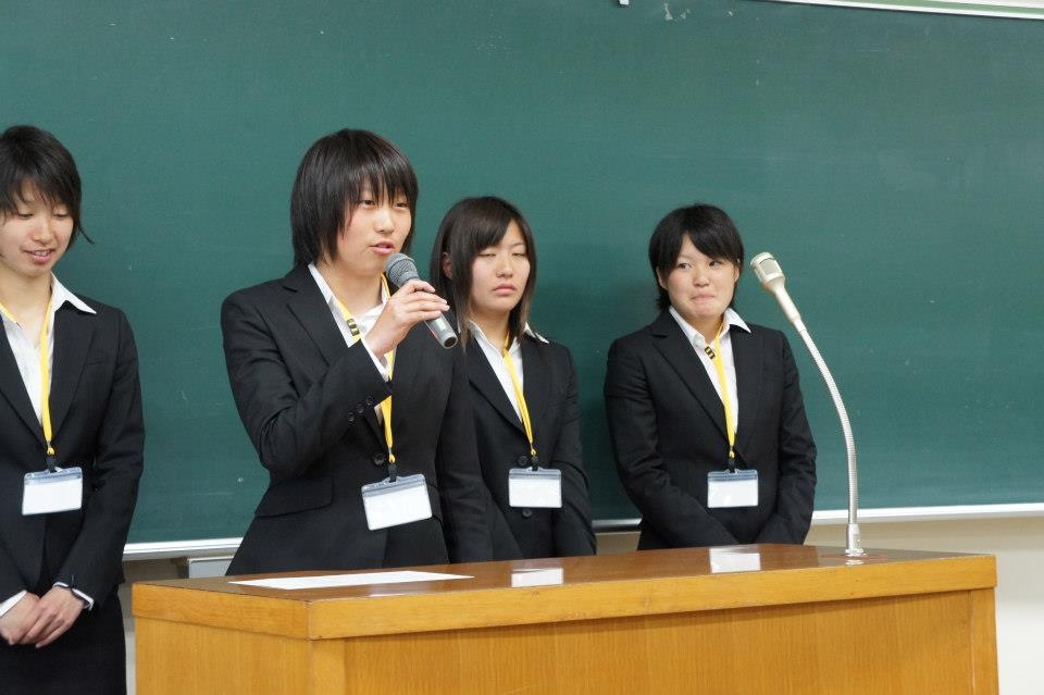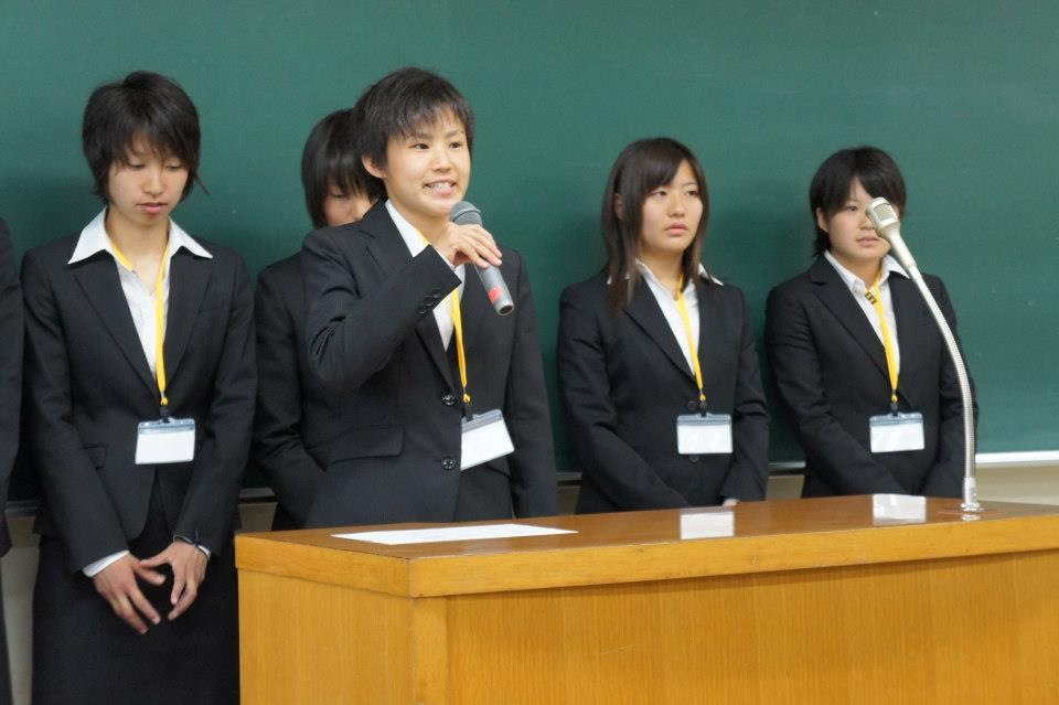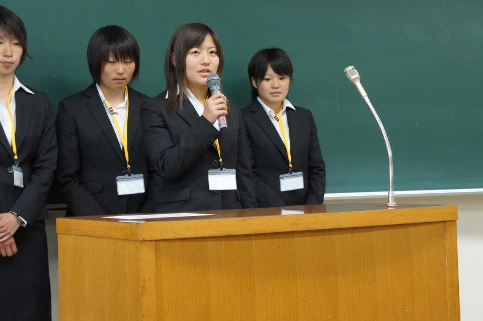 1年生の挨拶(写真左から:山田、内山、リコ、杉森、福井、川原、宮沢、工藤)