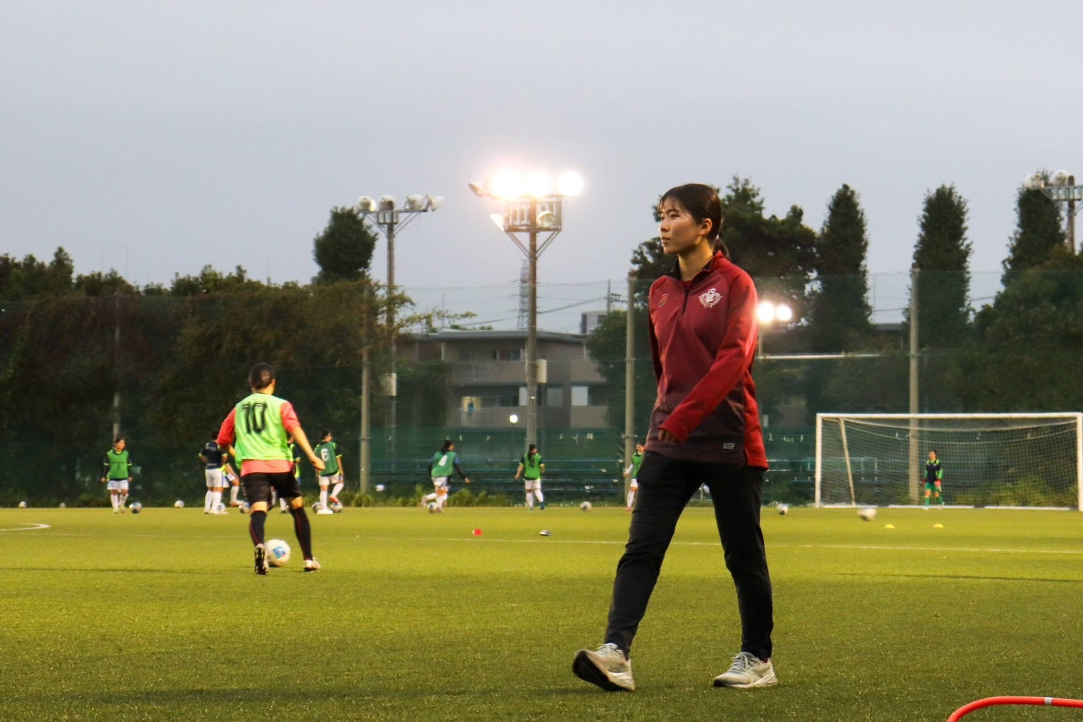 ピッチ外で多くの仕事をしながら、ピッチで走り回ってボールを拾っていたり、練習がスムーズにできるように色々な人とコミュニケーションをとっている姿。