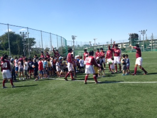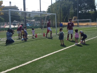 当日は全日本関東予選3回戦もあったため、私達ア式蹴球部からは13名の選手が男子部とともに園児から小学生を対象にサッカー教室を行いました。