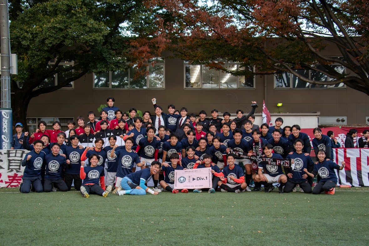 今節を持って関東大学サッカーリーグ2部全日程を終了した。開幕前に2部優勝、1部昇格を掲げて挑んだ今シーズン。優勝とはならなかったが、チームを引っ張ってきた4年生の2人のゴールで念願の1部昇格を掴み取った。来シーズンは4年生の思い、そして紡がれてきた歴史を背負い1部で戦っていく。