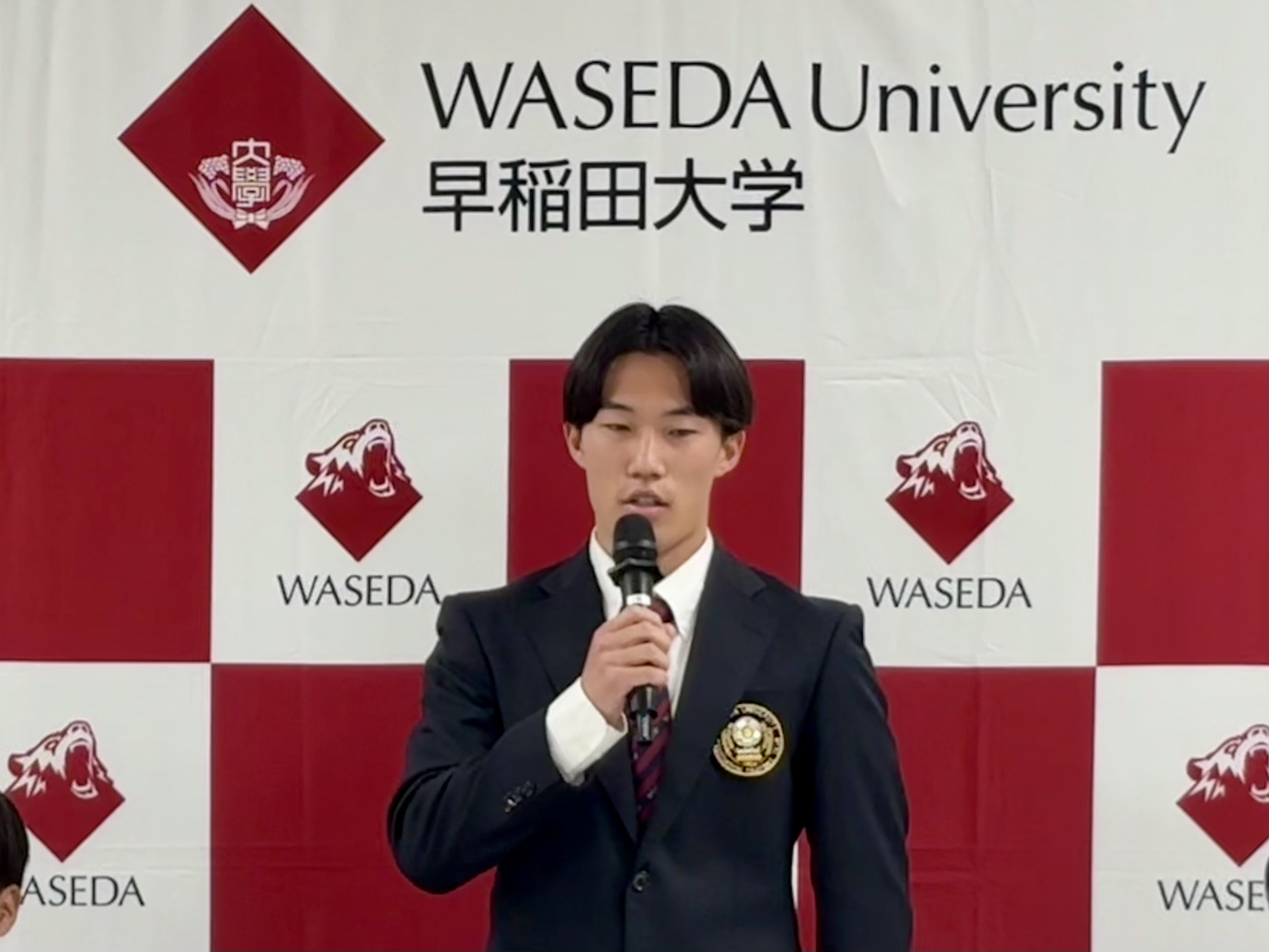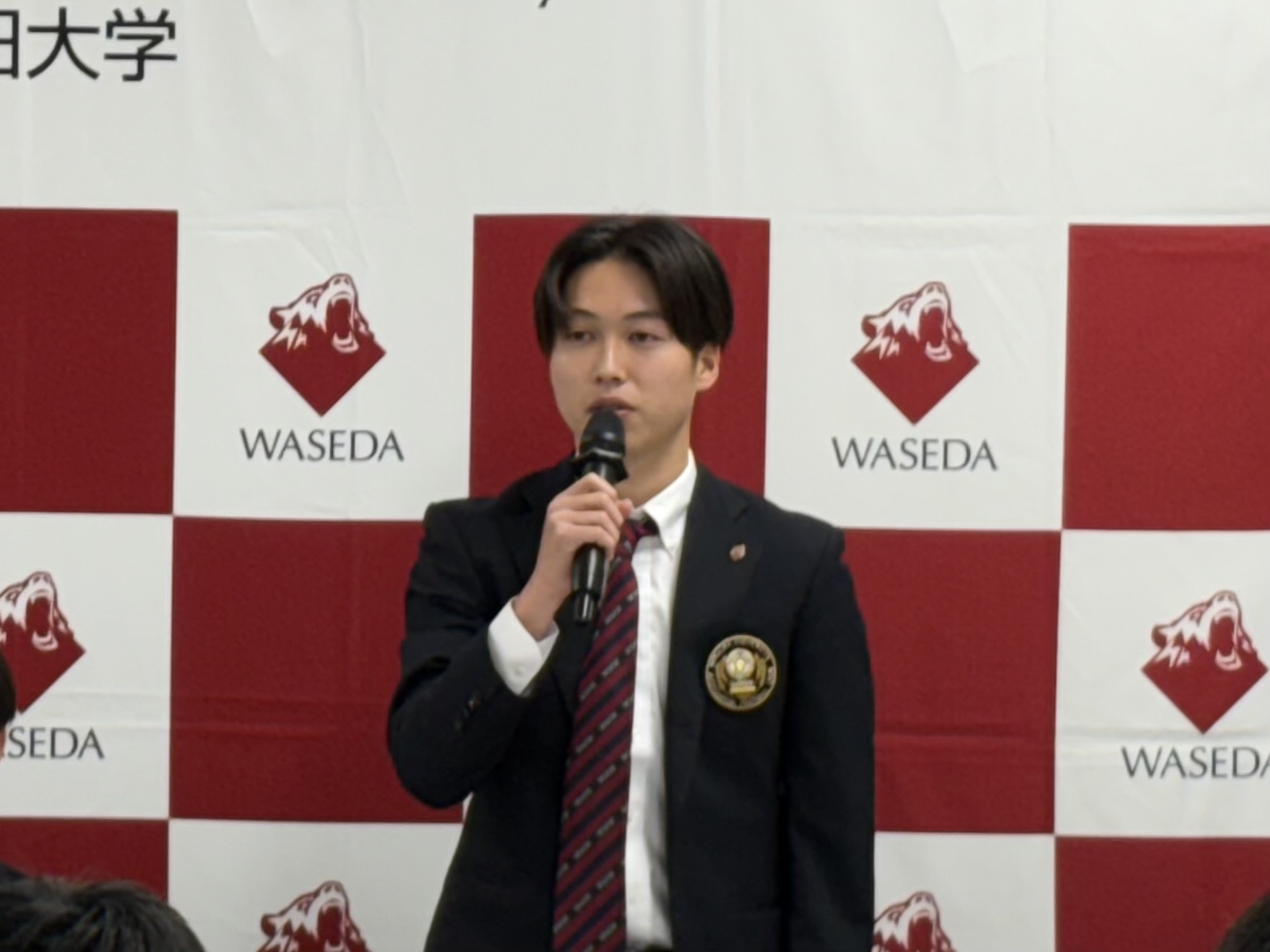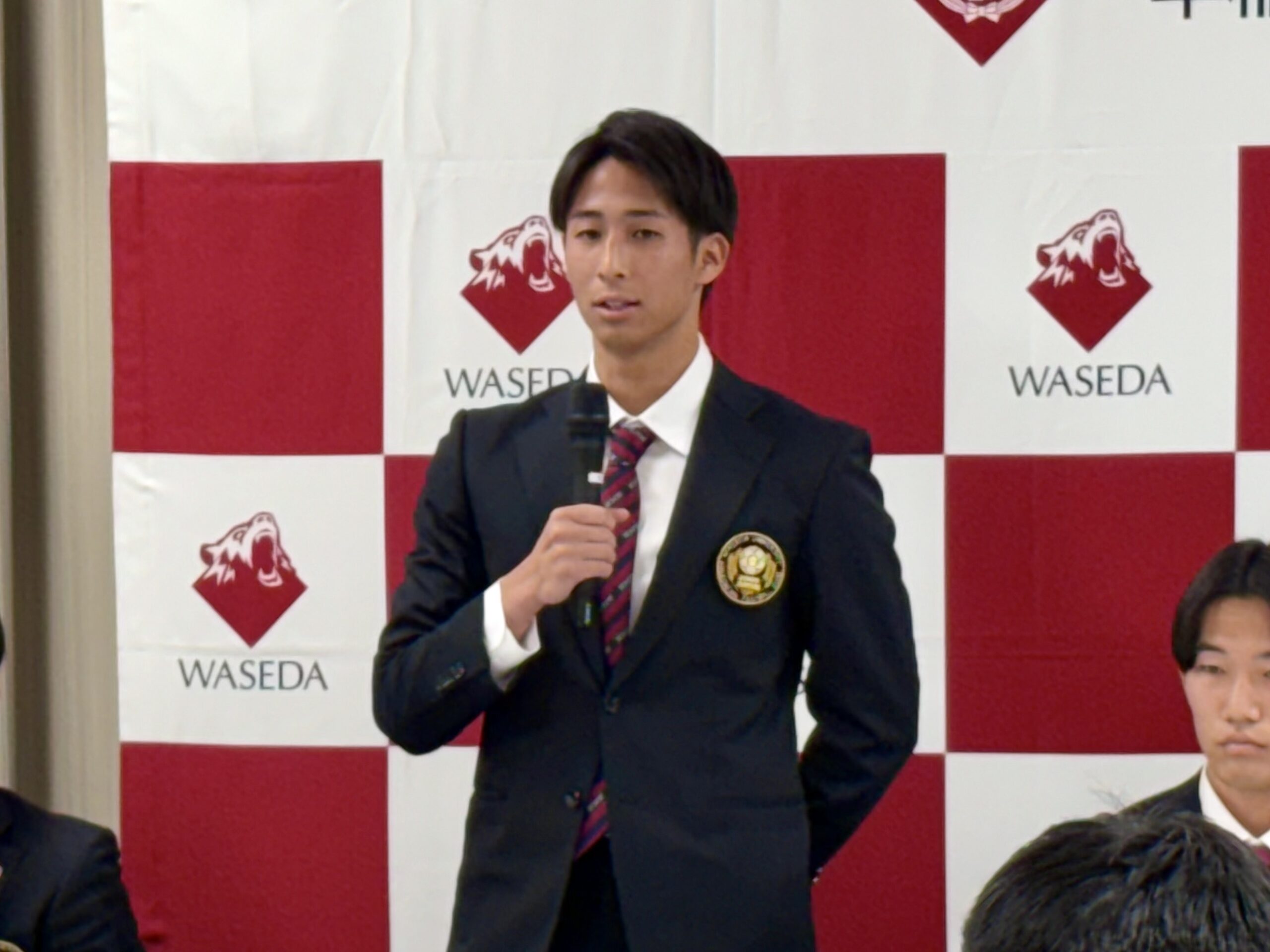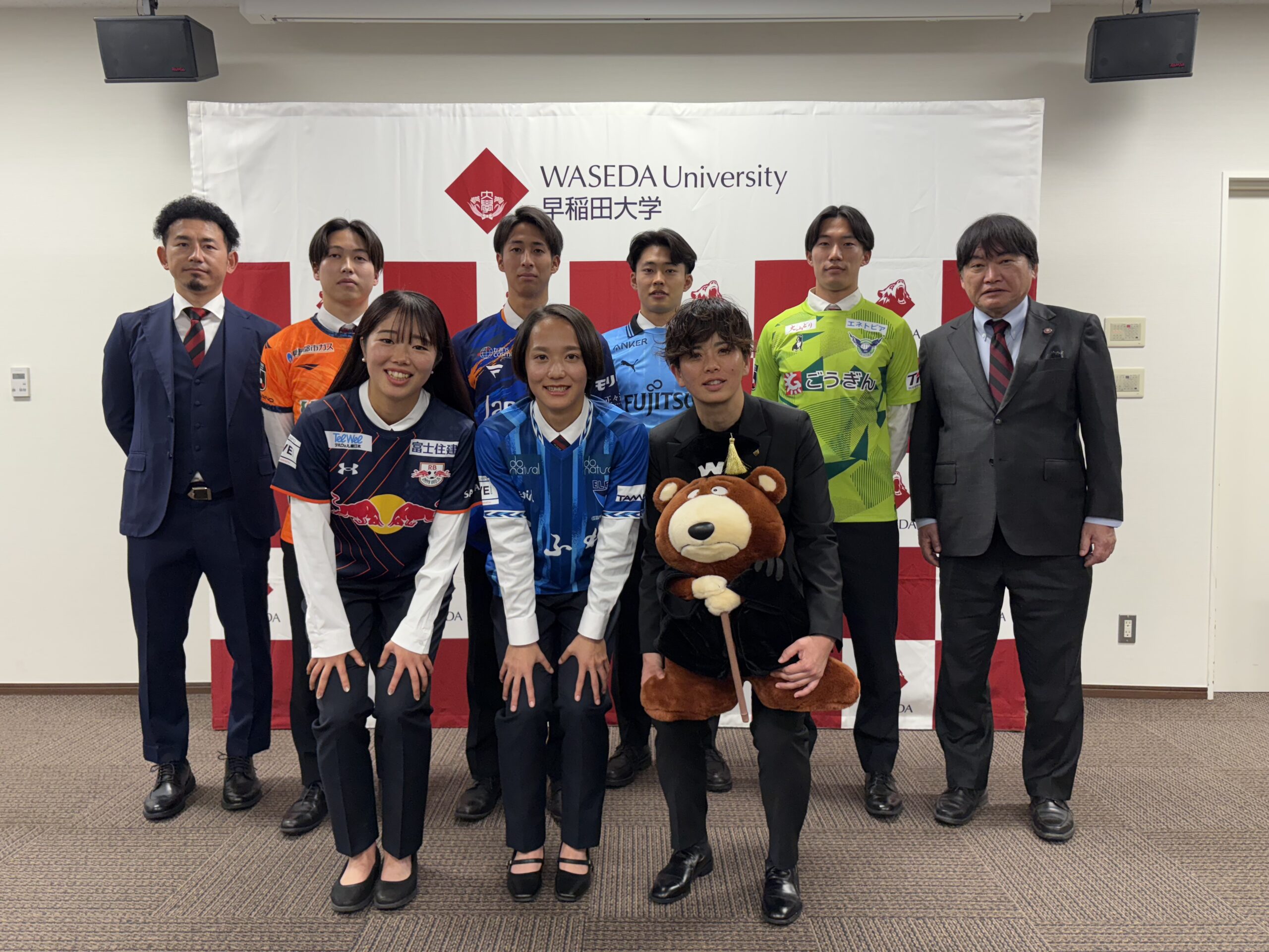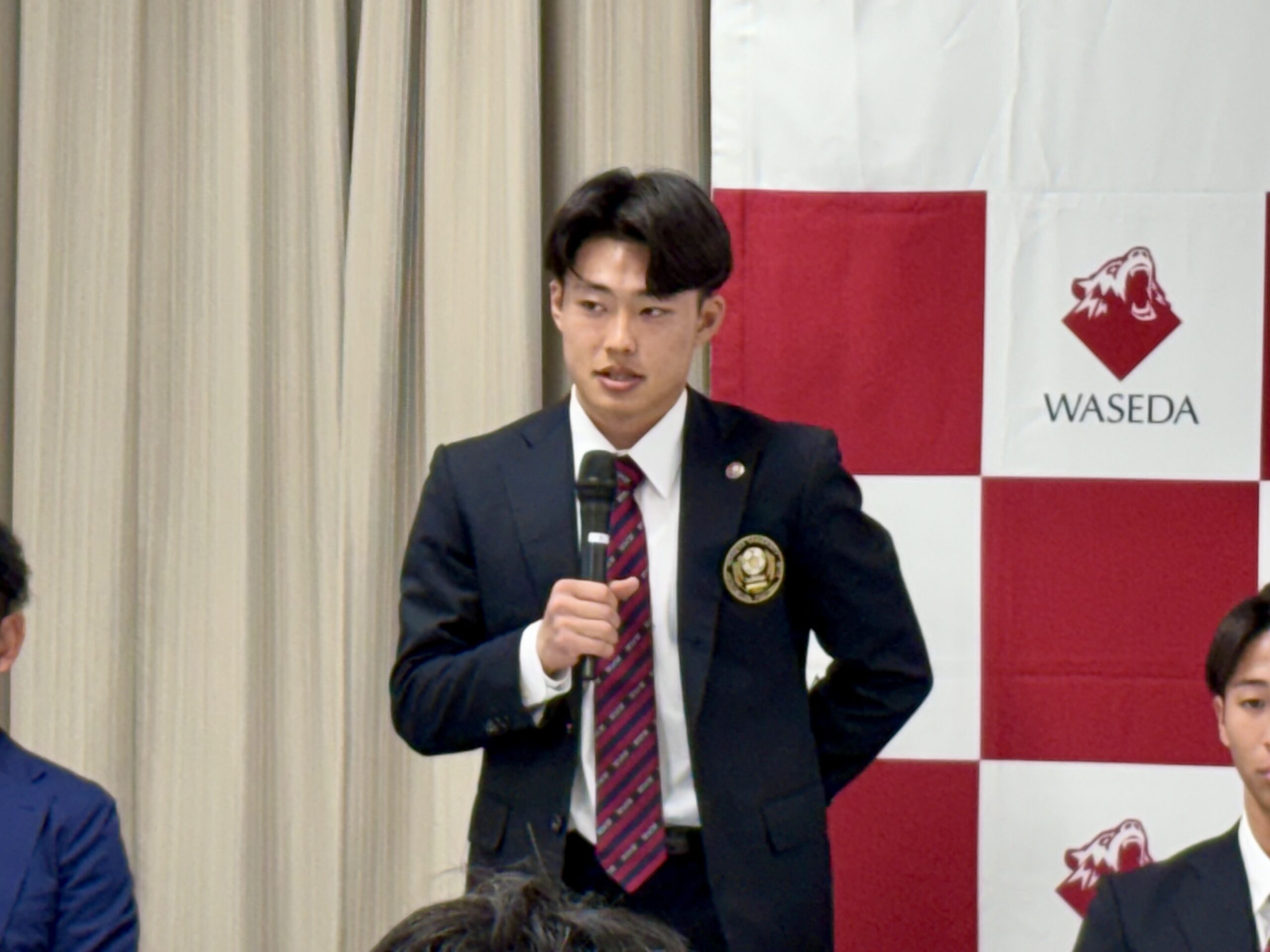 12月9日に早稲田大学大隈会館にて行われました「早稲田大学ア式蹴球部2026シーズン J リーグ・WEリーグ加入内定選手合同記者会見」に弊部から以下4名が出席いたしました。