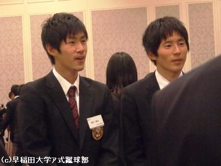 男子部今年度主務吉川、主将畑尾、副将菅井
