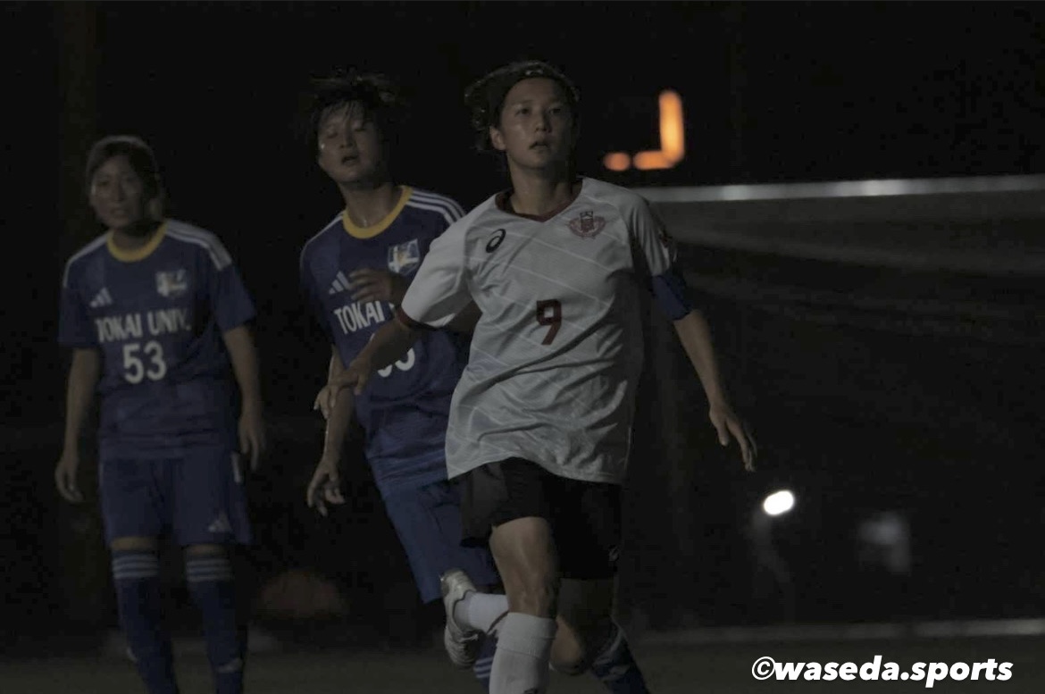 夏の終わりを感じるナイターの中アウェイ東海大学にて、関東大学女子サッカーリーグ後期第6節東海大学戦が行われた。中断明けの試合となった今節、もう一戦も落とせない状況の中、勝ち点3を掴むべく試合に臨んだ。