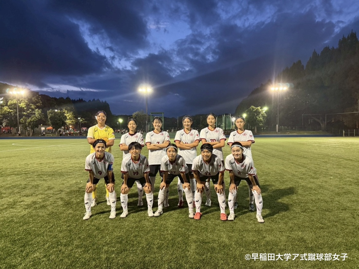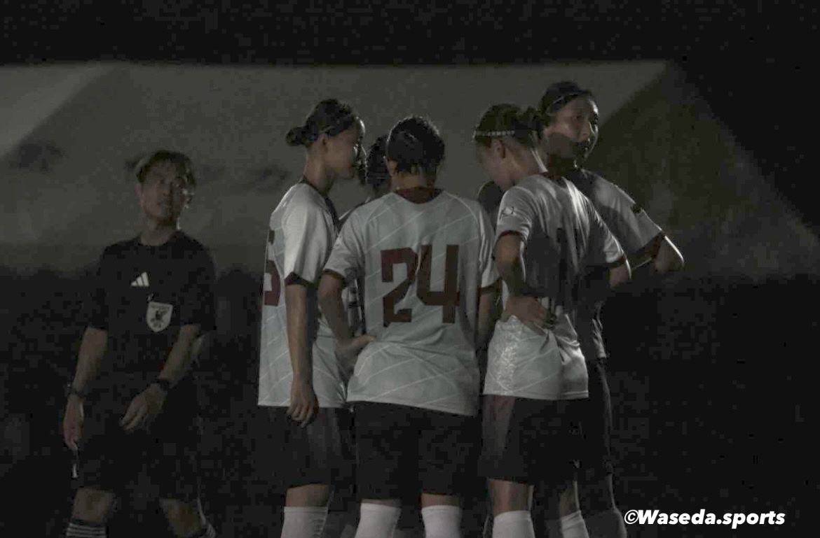 後半は、早稲田ボールでキックオフ。55分、11三宅の縦パスを受けた17米村が左サイドからクロスを上げ、ファーにいた19福岡がシュートを放ち得点。3-0となる。続いて、57分、9生田がペナルティエリア付近からドリブルで突破し、豪快なシュートを決める。4-0となる。62分9生田→23小島、70分には、19福岡→18河合、11三宅→15川本の交代を行う。ボールを保持する状態が続くが、なかなかゴール前まで迫ることが出来ない。89分、13佐溝→5淀川の交代を行う。91分、自陣低い位置でのスローインからゴール前まで相手に攻め込まれるも、1田村を中心になんとか全員でかき出し難を逃れる。最後まで早稲田ペースで試合をやりきり4-0で試合終了。