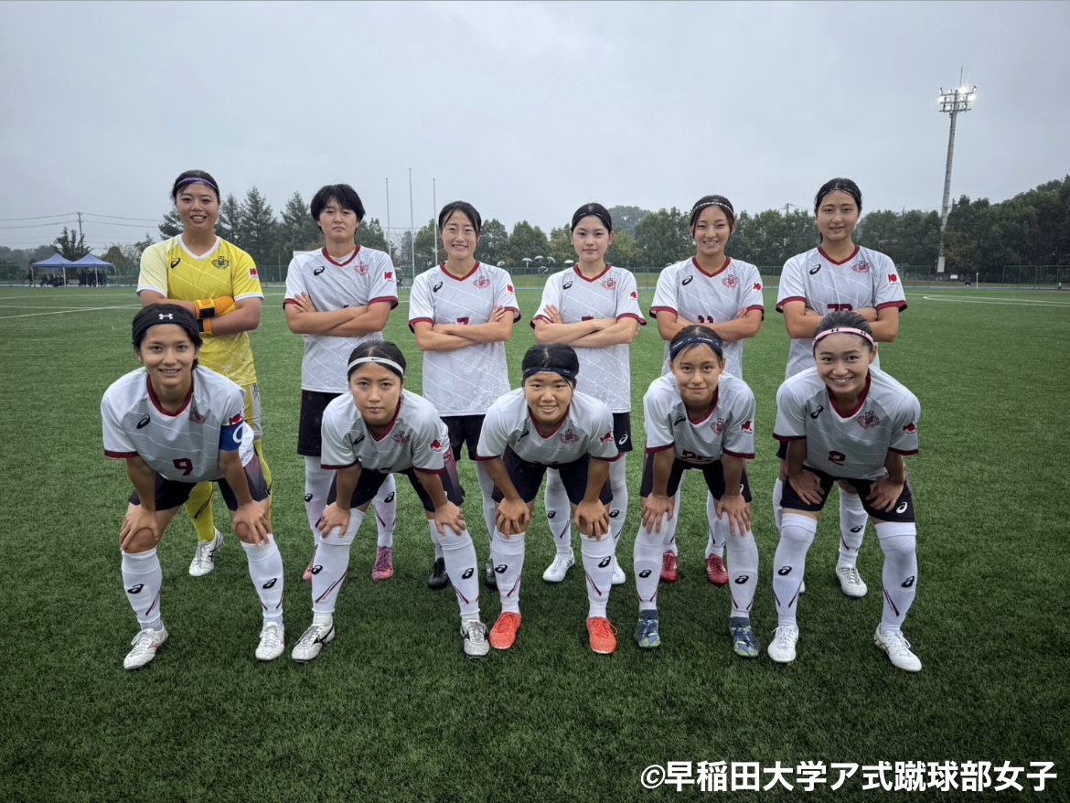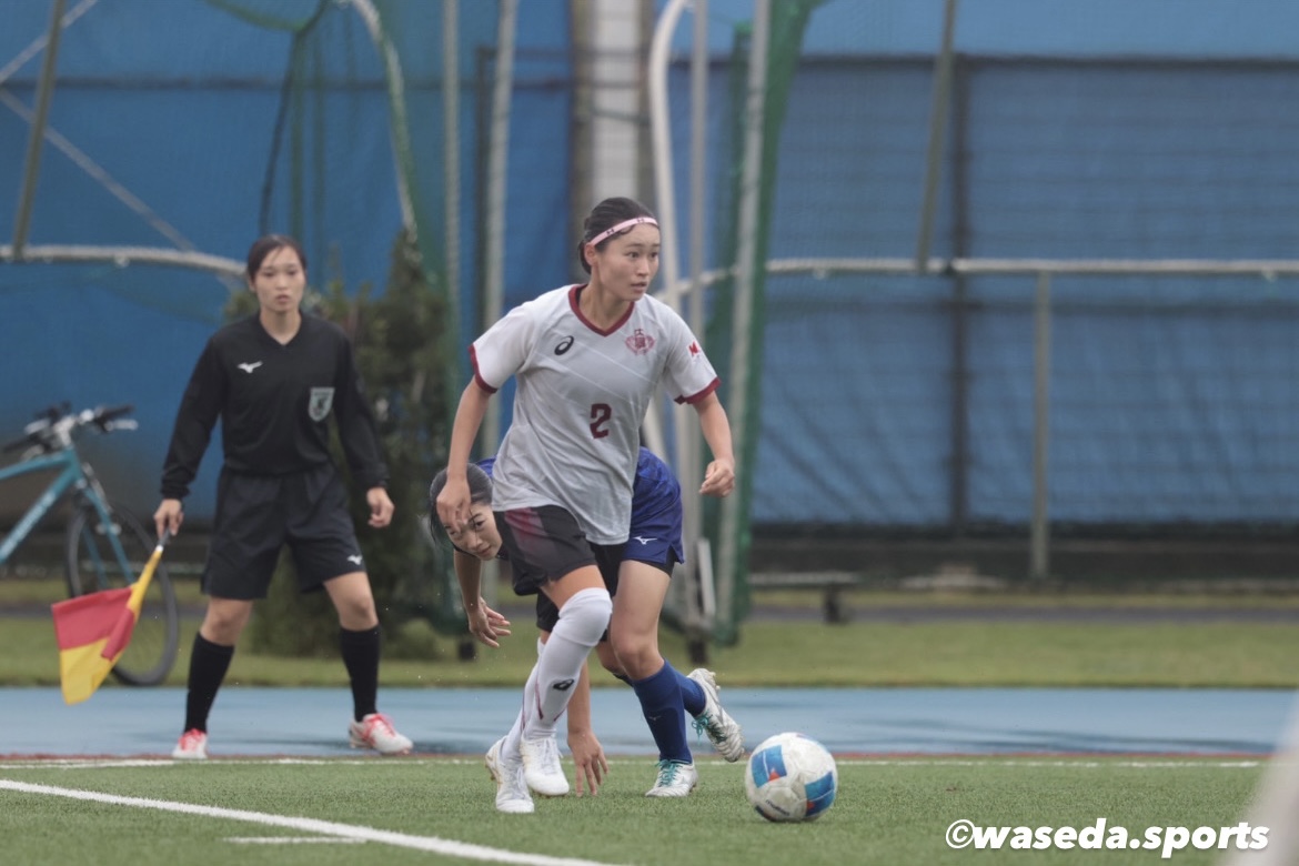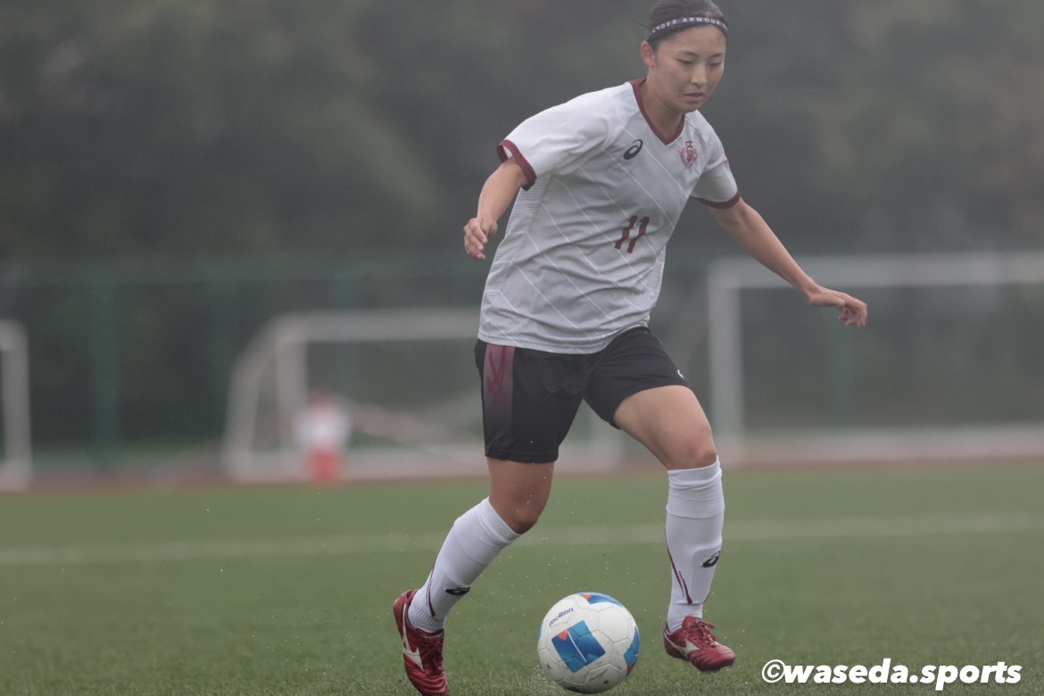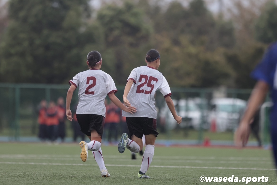 49分、左サイド17米村の仕掛けによりゴール前まで迫るも一度相手に阻まれる。こぼれ球を6千葉が拾い、サイドを駆け上がってきた13佐溝にスルーパスを送る。13佐溝がクロスをあげCKを獲得するが、GKに阻まれ得点を奪うことは出来なかったが、後半開始から早稲田がペースを握る。57分に7﨑岡→23小島、67分に17米村→24福島の交代を行う。3杉山、25小林を中心に相手にチャンスを作るも献身的な守備でゴールを守りながら得点を目指す。85分には2新井の右サイドから仕掛けからクロスを上げ、相手に弾かれたこぼれ球を24福島がシュートを放つ。また、88分には左サイド23小島がサイドで切り返しクロスを上げる。9生田合わせた後、11三宅がシュートを放つ。どちらもゴールとはならないが、諦めずににゴールへと向かう。そして、90+3分、左サイドで23小島が仕掛けCK獲得。23小島のCKに25小林がヘディングで合わせ、ついに得点。試合終了間際で追いつくことができ、1-1で試合終了。