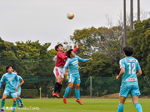 先制点を奪いたい早稲田は、後半9分、11西堂が縦突破から自ら持ち込みシュートを放つも枠を捉えることが出来ない。後半19分、早稲田11西堂に代えて7安斎を投入する。早稲田は7安斎を起点として左サイドを攻略するも相手の守備に阻まれ得点することが出来ない。後半33分、34分と筑波大に立て続けにシュートを放たれるも、1ヒルのファインセーブによって得点を許さない。後半35分には早稲田28丹羽に代えて19光田を投入し攻撃の姿勢を高める。すると後半36分、早稲田19光田のクロスに2森が合わせるも決めきることが出来ない。その後もシュートを放ち果敢にゴールに迫るが、最後まで筑波大のゴールを破ることが出来ず、0-0で試合終了。