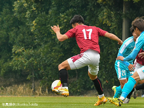 前半はお互いにゴールに迫るが、堅い守備で得点は動かなかった。筑波大は中盤の7を中心にポゼッションサッカーでゴールへ迫ってきた。早稲田は相手のテンポに呑まれず、後半は交代選手を中心にゴールへ迫り、必ず勝利したい。