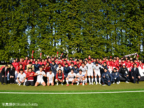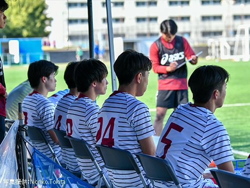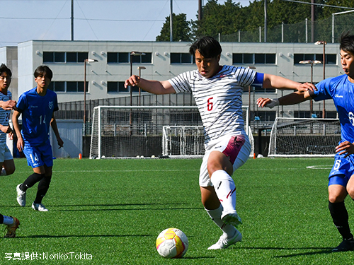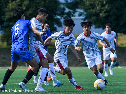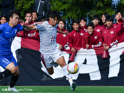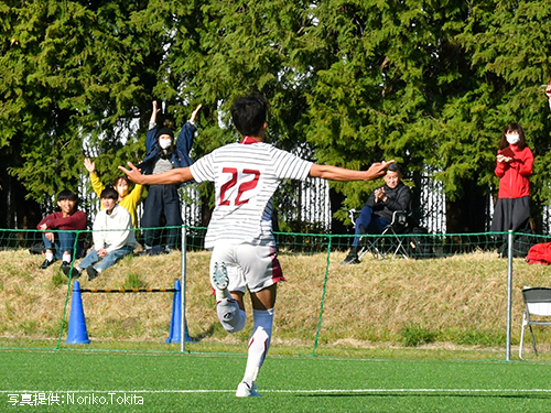 後半は序盤から相手陣内でプレーする時間帯が続く。後半4分、2森が右サイドから上げたクロスを受けた7安斎がシュートを放つが、相手GKの好セーブに阻まれる。後半16分、作新大の左サイドのFKから決定機を作られるが、1ヒルのビッグセーブから6平松のクリアでピンチを救う。その後も押し込む時間帯が続き、相手サイドバックの裏を狙った攻撃を試みるも、上手く噛み合わない。後半23分、中央でのコンビネーションから抜け出した8福井が放ったシュートは惜しくもバーの上に外れる。その後は両者譲らず拮抗した展開が続く。後半33分、2森が右サイドから上げたクロスに7安斎が頭で合わせるが、ポスト直撃。そして後半35分、PAに切り込んだ7安斎が倒され、PKを獲得。これを自ら決め、待望の先制点を手に入れる。さらに、試合終了間際の後半45+3分、9奥田のスルーパスに抜け出した22平野が相手GKとの1対1を冷静に決め、2-0となる。これがラストプレーとなり、そのまま試合終了。