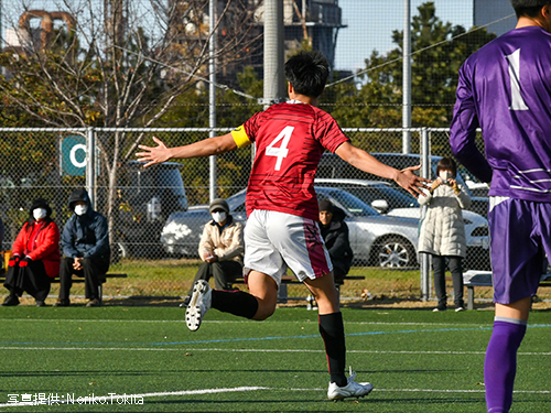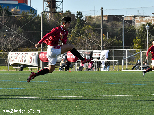 前半は、順天堂にボールを握られ押し込まれる展開が続く。前半13分には順天堂に決定機を作られ危うく失点かと思われたが、1ヒルがスーパーセーブでチームを救う。その後も押し込まれるも失点を許さないまま迎えた前半37分、11小松のスルーパスに抜け出した18駒沢が先制ゴールを決める。そのまま1-0で前半を折り返す。