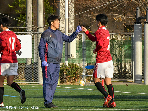 後半開始から攻め込まれる展開が続き、なかなか思うような試合展開とはならなかった早稲田。時間が経っても相手の勢いは収まらず、後半14分失点を許してしまう。失点後も押し込まれる展開が続いたが、DF陣を中心に体を張った守備で逆転は許さない。そして迎えた後半37分、厳しい展開の中からセットプレーでチャンスを作り、ゴール前の混戦から最後は7安斎が値千金の勝ち越しゴールを決める。その後も終了間際まで順天堂の怒涛の攻撃を受けるも、チーム一丸となり集中力を切らさず守り切り、2-1で勝利を収めた。