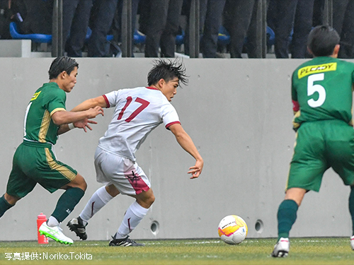 開始早々の前半4分、左に流れた早稲田18伊藤猛からクロスを上げるが、キーパーにキャッチされる。前半7分、9鈴木がロングロボールを右サイドへと展開し、3増田がクロスを上げ、こぼれ球を20久米が合わせるも相手ディフェンダーに阻まれる。前半11分、駒澤に裏抜けされるが27伊藤稜がブロックし、コーナーへと逃れる。前半15分右サイドからアーリークロスを上げられ、フリーの相手にダイレクトシュートを打たれるが枠を外れる。前半18分、3増田が、相手をいなし、クロスを上げ17秋山が合わせるが枠を捉えることはできない。前半21分、左サイドからクロスを上げられるが、27伊藤稜が冷静にクリアし、難を逃れる。両者拮抗した展開が続いた32分右サイドからクロスを上げられヘディングシュートを打たれるが枠を逸れる。前半37分、左サイドから24高橋作がクロスを上げ14森田が合わせるが相手キーパーに阻まれる。前半40分左サイドからのクロスを合わせられるがオフサイドとなり切り抜ける。前半45分、3増田の縦パスから左サイドに展開し24高橋作がクロスを上げるがゴールを超えてしまう。前半45+1分、再三の左からのグラウンダークロスを合わせられるが21海本のセーブでコーナーへと逃れる。