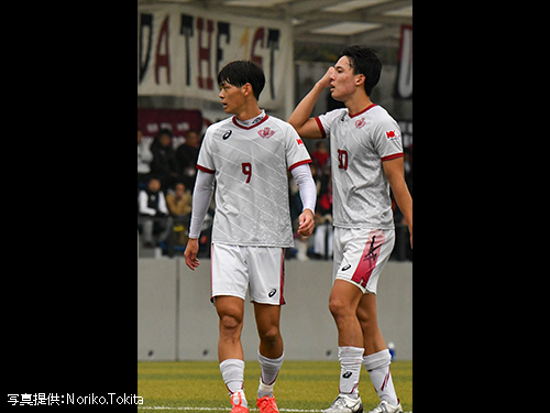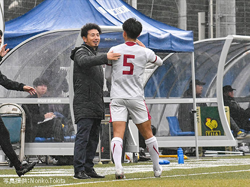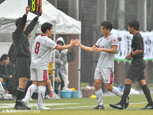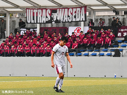 後半開始から押し込まれる展開が続き、迎えた後半11分、左サイドに展開されるも守備陣が落ち着いて対応する。後半16分、早稲田2佐々木、11本保を投入し、攻撃の活性化を図る。後半18分、左サイドで剥がされクロスを上げられるが難を逃れる。後半21分、相手の左コーナーキックから何度もロングボールを蹴られるが集中した対応でチャンスを作らせない。後半22分、右サイドから2佐々木からのクロスのこぼれ球を拾い、17秋山がペナルティエリアに侵入するが相手ゴールを破ることができない。後半30分、5佐久間を投入。得意なポストプレーでチームに勢いをもたらしたい。後半33分、左サイドから決定的なチャンスを作られるが、27伊藤稜のクリアがチームを救う。後半34分、右サイドのスローインを受けた5佐久間の起点からペナルティエリア付近でボールを受けた11本保がシュートを放つがバーの上に惜しくも外れる。後半37分、中盤で8谷村が起点となり5佐久間にパスを送る。5佐久間がワンタッチで14森田に渡し、14森田が左サイドでフリーの11本保へパス。11本保がグラウンダーのクロスを送り20久米が冷静に沈める。後半39分、相手がロングボールをそらし、それをダイレクトシュートで合わされゴールを決められる。後半45+2分、連続のコーナーキックから30尾崎がシュートを打つが相手DFに阻まれる。後半48分、左コーナーキックから4石井が合わせるが相手キーパーに阻まれる。そのまま1-1で試合終了。