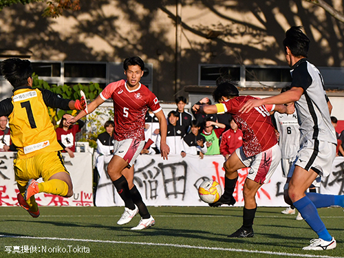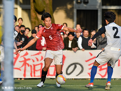 前半、互いに組織的な守備で中盤の攻防が続き、決定的なチャンスはなかった。早稲田一丸となって、交代選手を含んだ全員でゴールをこじ開け、勝利を手にしたい。
