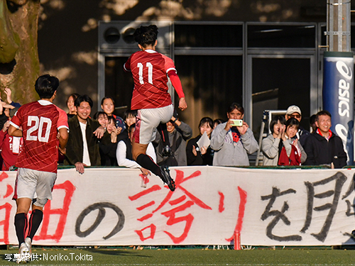 今節を持って関東大学サッカーリーグ2部全日程を終了した。開幕前に2部優勝、1部昇格を掲げて挑んだ今シーズン。優勝とはならなかったが、チームを引っ張ってきた4年生の2人のゴールで念願の1部昇格を掴み取った。来シーズンは4年生の思い、そして紡がれてきた歴史を背負い1部で戦っていく。