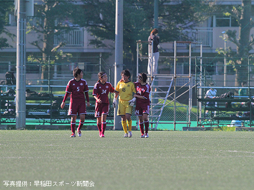 欲しかった先制点で勢いづいた早稲田は後半36分正野シュートのこぼれ球を河野が詰め追加点…と思いきやオフサイドの判定。