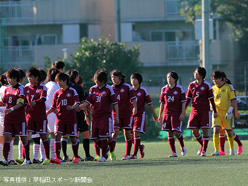 後半、右SB大島・右SH正野で崩す時間帯が続くもののフィニッシュに持ち込めない。リズムを変えたい早稲田は後半20分中村→安部と代える。