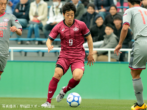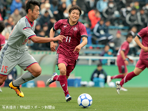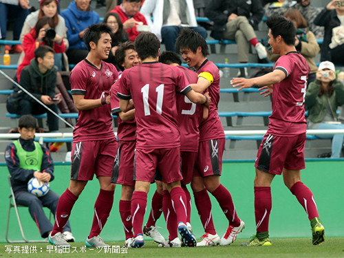 すると60分に2新井の縦パスを受けた9中山がペナルティエリア内で2人をかわし左足一閃。ボールはサイドネットに吸い込まれ、早稲田が追加点を奪った。