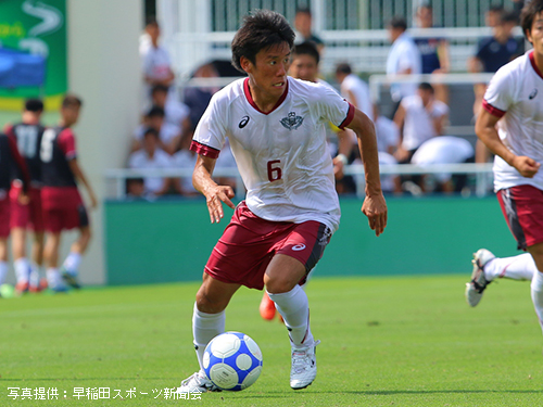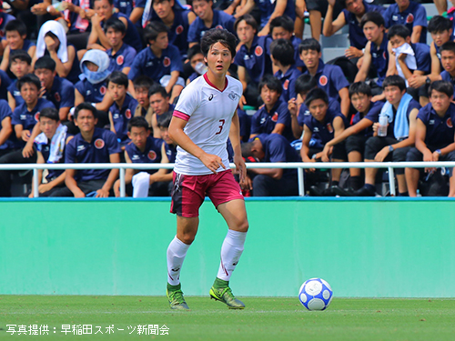 ハーフタイムには相手チームの最短の攻撃をさせないことを共有して後半に臨んだが、後半開始直後の50分に相手が早い段階で中に入れたボールを頭で合わせられ、早々に失点を喫してしまう。その後は桐蔭横浜がボールを支配し、我慢の時間が続いた。しかし、次第に相手も足が止まりはじめ、早稲田がチャンスを作っていく。