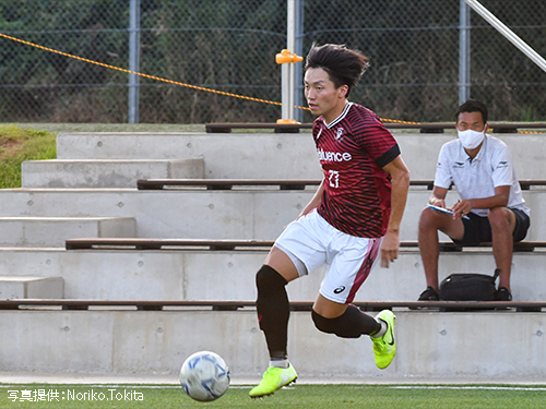 前半、ロングボールを多用する駒澤大に、立ち上がりから押し込まれる時間が続く。徐々に、ボールを保持する時間が増えると、前半21分、4鍬先、10加藤とボールを繋ぎ、最後は今季初先発の37大西がミドルシュートをゴール左下に突き刺し、先制に成功する。前半25分、27水野と4鍬先で左サイドを崩し、中に折り返したボールを10加藤が合わせ追加点を挙げる。立て続けに得点を挙げた早稲田だが、前半33分駒澤大のパスワークで、中央を崩され、失点。しかし、前半39分、相手陣地でボールを奪った4鍬先が10加藤とのパス交換から抜けだし、ループシュートで3点目。その後失点を許すも、前半終了間際に、主将杉山がフリーキックをヘディングで合わせ、4-2で前半終了。