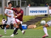 前半、早稲田は立ち上がりからサイドを中心に攻撃を仕掛ける。前半12分、3柴田の浮き球のパスに反応した32小野寺が落とし、4鍬先がシュートを放つも、相手GKに阻まれる。立て続けに相手ゴールに迫る早稲田。前半18分、23清水のパスを受けた19倉持がドリブルを仕掛けPKを獲得するも、9梁がこのPKを失敗してしまう。給水後も早稲田が、ボールを保持する時間が続く。前半42分、2阿部がオーバーラップから鋭いクロスを上げるも、東洋大の堅い守備を前に得点に繋げることができない。早稲田が優勢に試合を進めたものの、0-0で前半終了。