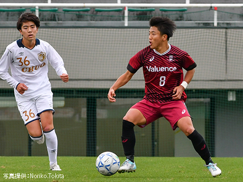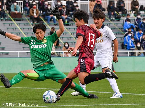 後半6分、左サイドから11水野がシュートを放つと、中央大GKがファンブルしゴールに吸い込まれる。着実に追加点を重ね3-0とした早稲田は、優位に試合を運ぶ。その後も、中央大ゴールに迫るも、なかなか追加点が奪えない時間帯が続く。後半36分、中央大に決定機を作られるも、5杉山の体を張った守備で得点を許さない。しかし、後半45+2分、ゴール前の混戦から中央大7に得点を許す。そのまま、3-1で試合終了。